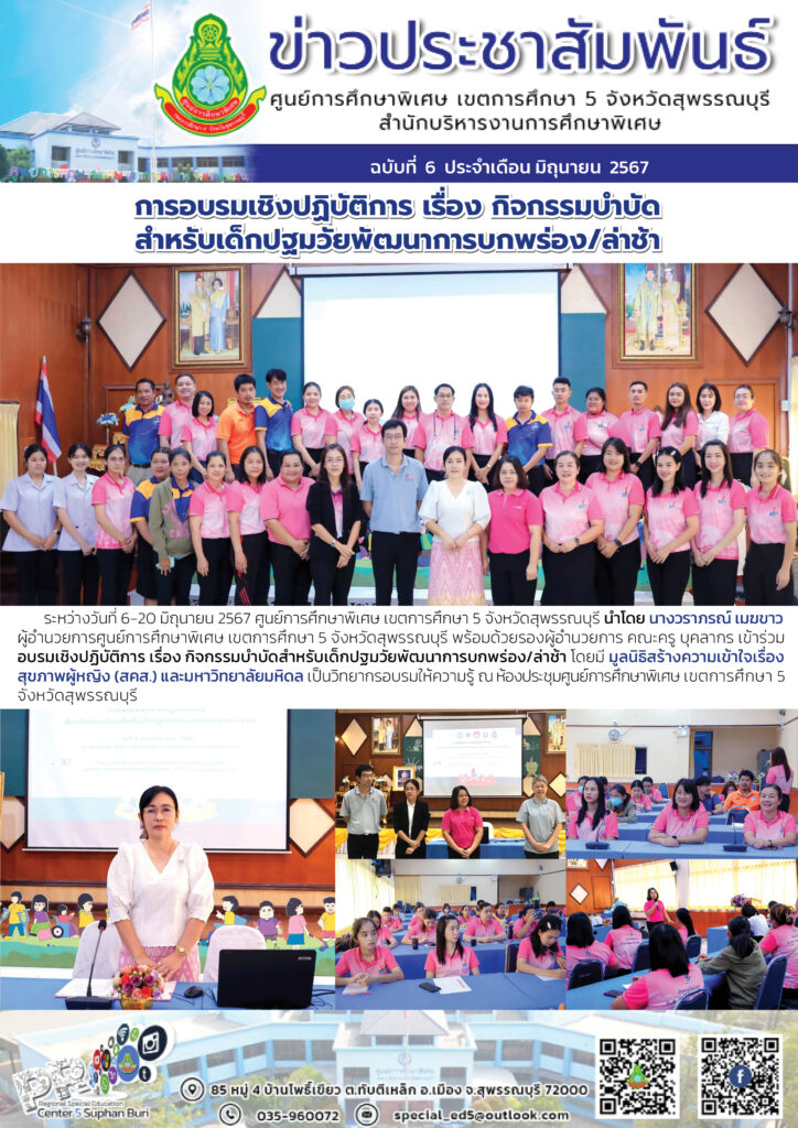 การอบรมเชิงปฏิบัติการ เรื่อง กิจกรรมบำบัดสำหรับเด็กปฐมวัยพัฒนาการบกพร่อง/ล่าช้าBy อาลิญาณ์ ชิณโพธิ์คัง / 20 มิถุนายน 2024 Post Views: 148